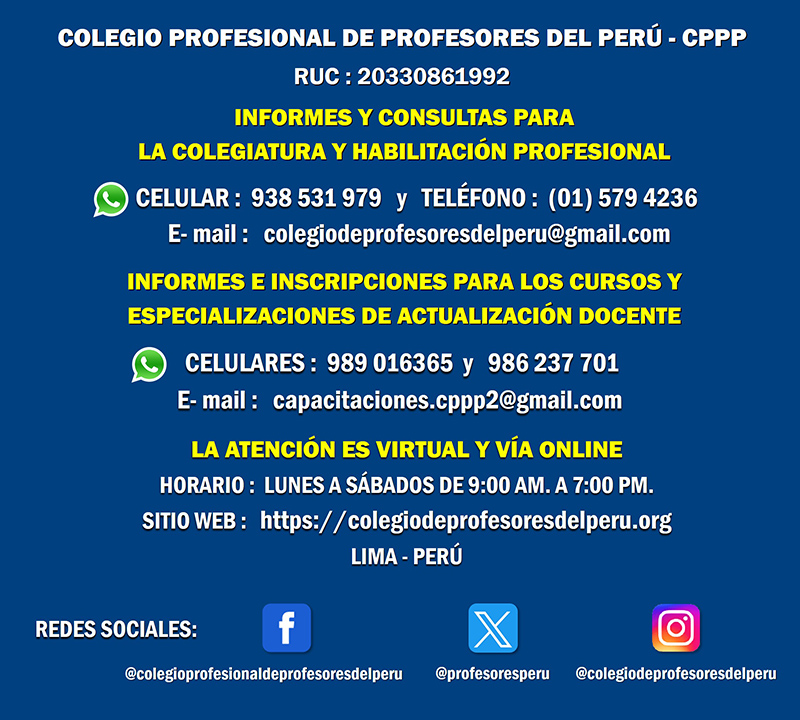 El Colegio Profesional de Profesores del Perú - CPPP celebra el 25 de Diciembre la Fiesta Cristiana de la Navidad recordando el nacimiento de Jesús y el 31 de Diciembre damos la bienvenida al Año Nuevo. El CPPP les desea a las familias peruanas